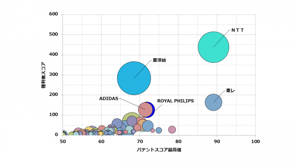 近年ウェアラブル端末が多様化している中、着るだけで心拍データなどの生体情報を計測可能な衣服にも注目が集まっています。今調査では日本の特許庁で公開されている「生体情報計測ウェア関連技術」全般について、個別特許の注目度を得点化する「パテントスコア」をベースに、特許の質と量から総合的に見た評価を行いました。
