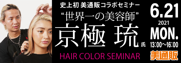 プロ向け美容材料の通信販売サイト「美通販」が、「京極琉 ヘアカラーセミナー」を2021年6月21日(月)に東京都内にて開催予定!