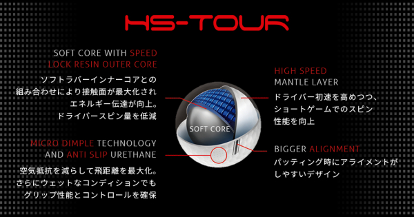 フェースに食いつくような打感と、優れたドライバー飛距離を両立。 一般ゴルファー〜競技志向ゴルファーまで幅広いプレイヤーに適した3ピース構造ツアーボール。