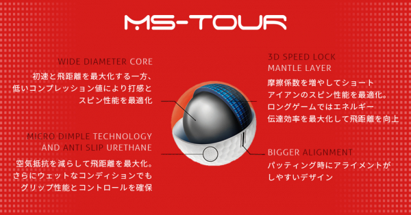 飛ばしたいときに飛んで止めたいときに止まる。 革新素材レジンを採用した戦うための4ピース構造ツアーボール。