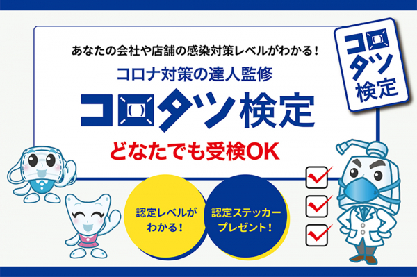 終息見えないコロナ禍 安心して事業継続するために 企業や店舗の感染対策を“見える化” 「コロタツ検定」4月1日より開始 最上位級は 黒帯!