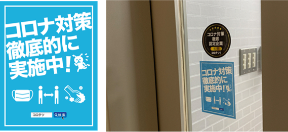 ステッカーと同デザインの認定データを送付しますので、ホームページにも併せて掲示いただけます。また、「コロタツ検定サイト」の認定企業一覧ページに企業名を掲載することにより、広く感染対策への取り組みを提示することができます(※当サイトへの企業名掲載は任意です)