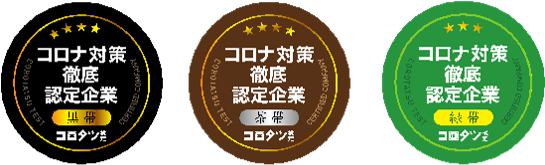 受検方法 :「コロタツ検定」サイトの以下URLより、受検できます。41の設問項目に回答し、企業情報を入力のうえ申請いただくと、レベルを判定。追って、該当レベルの認定マークのデータをメールにて、ステッカーは郵送にてお送りいたします。なお、茶帯認定企業は、最も高いレベルで対策をおこなう企業へ付与される最上位級「黒帯」の審査まで進むことが可能です。「黒帯」の判定は、オンライン(zoom)面談やメールでのやり取りにて、独自の対策支援制度や独自のコロナ感染対策ガイドラインの有無などを確認させていただきます。