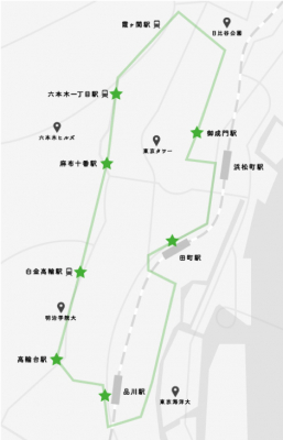 ・発着点 :保育園、及び園の近隣(田町・高輪大・麻布十番などの)エリア