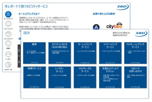英国に本社を置き自動車技術に関する調査およびコンサルティングを手掛けるSBD Automotiveジャパン(名古屋市)では、欧州、米国、中国で自動車メーカー各社が展開しているモビリティサービスに関する調査を継続的に行っており、最新情報をまとめたレポート「モビリティサービス最新動向ガイド」を四半期ごとに更新、その最新版を2021年4月13日に発行いたしました。