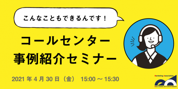 コールセンター代行サービスを提供しているマーケティングアソシエーション株式会社(本社:東京都台東区 代表取締役:相内あゆ美、以下当社)は、2021年4月30日(金)に、無料Webセミナー「こんなこともできるんです!コールセンター事例紹介セミナー」を開催いたします。