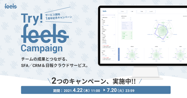 SFA・CRM・日報クラウドサービスの「feels」1周年を記念した「Try! feelsキャンペーン」がスタート!