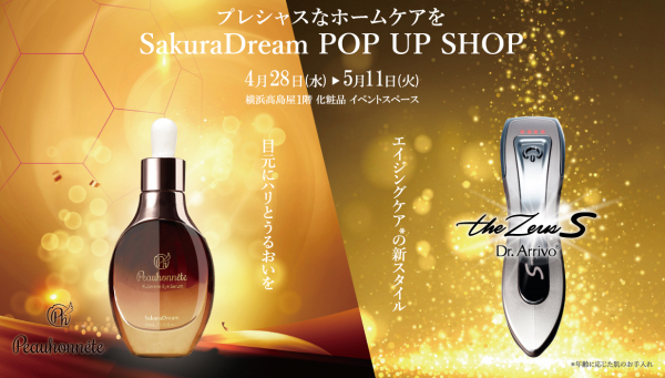 株式会社サクラドリーム(神奈川県横浜市、取締役社長:河野洋一。以下、サクラドリーム)は、2021 年 4月 28日(水)〜5月 11日(火)の期間、横浜?島屋(横浜市西区)1階 化粧品 イベントスペースにて、「プレシャスなホームケアを SakuraDream POP UP SHOP」を開催いたします。