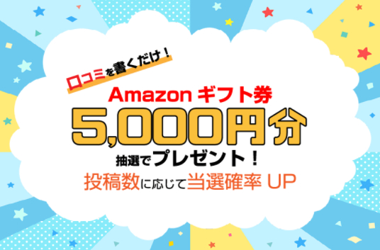 口コミを投稿するだけで、Amazonギフト券5,000円分が当たる!