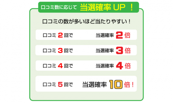 口コミ5回・・・当選確率10倍!