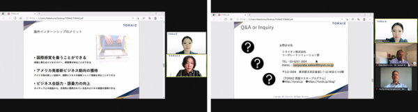 画像:「TORAIZ 社会人海外リモートインターン」サービス開始発表会スクリーンショット