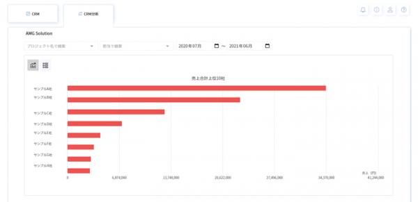 売上上位10件の取引先の売上額や受注率、粗利などがグラフと一覧で表示できるようになりました。