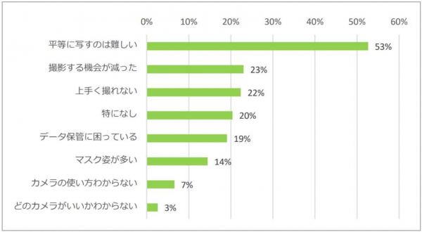 ・コロナ禍でイベントが縮小・削減する中、写真撮影の機会の減少に悩む声も23%あった。