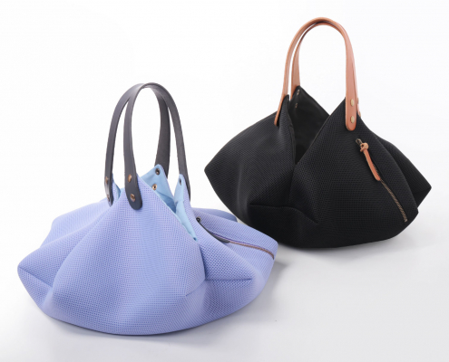 バッグ表面はスポーツウェアやスポーツ用品、ベビーカーのクッション部などに利用されるダブルラッセルというメッシュ生地を使用。