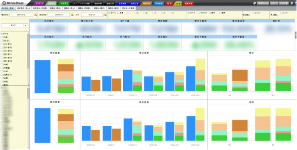2019年10月にワーキンググループを立ち上げ、計数管理システムの構築プロジェクトをスタートし、最初に実装したのは、事業部、部門、担当者といった階層におけるそれぞれの通期、月別、カテゴリー別の実績データを見える化するダッシュボードです。