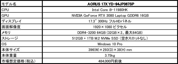 https://www.gigabyte.com/jp/Laptop/AORUS-17X--Intel-11th-Gen