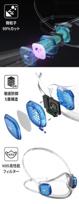 透明なボディには、N99相当の高性能フィルターを搭載し、微粒子の99%をカット。