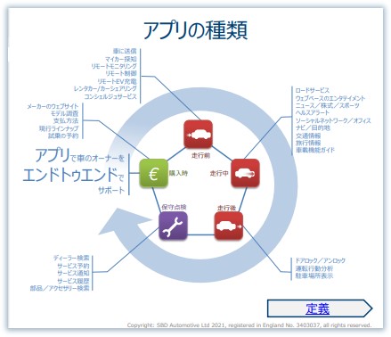 英国に本社を置き自動車技術に関する調査およびコンサルティングを手掛けるSBD Automotiveジャパン(名古屋市)では、自動車向けアプリ市場の調査・分析を継続的に行っており、最新情報をまとめたレポート「自動車向けアプリガイド」を四半期ごとに更新、その最新版を2021年7月15日に発行いたしました。