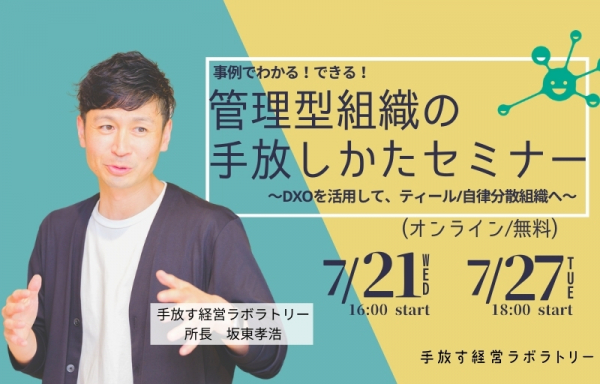 管理型組織の手放しかたセミナー 〜DXOを活用して、ティール/自律分散型組織へ〜【7月21日(水) 16:00- / 7月27日(火) 18:00-】