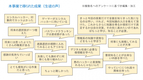 内容:高校生がエシカルハッカーの仕事を学び、実践するキャリアプログラム