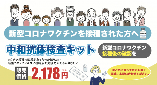 【新商品】新型コロナワクチン前後で、抗体・免疫を獲得しているか確認できる「新型コロナウイルス中和抗体検査キット」の取り扱いを7月1日より開始いたしました。