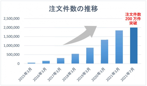 サービスの提供開始以降、ネット環境とスマートフォンの普及に従い、右肩上がりで登録数・利用者数が増加、この度、写真の注文件数が200万件を突破しました。