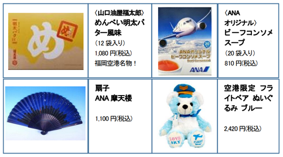 各地の空港で販売しているANA FESTAオリジナルのお土産物を中心に、普段はネットでしか購入できない、ANAがブランドとコラボして開発したバッグなどを期間限定で販売することになりました。本催事で取り扱う商品は免税品ではないため、どなたでもご購入いただけます。