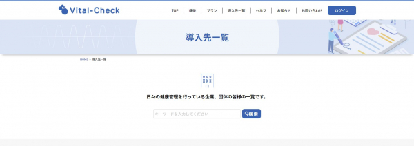 また、飲食店をはじめ、接客を伴う企業の社員の安全性のアピールとして、バイタルチェッククラウドサービスの導入している企業や店舗などを検索できる機能をサイト内に設けました。