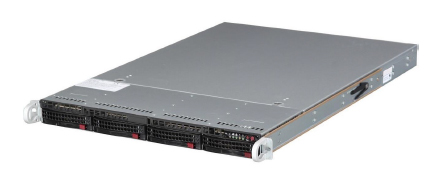ネットワークは10GbEを2ポート標準装備し、システム管理用IPMIや冗長化電源も標準搭載しています。1Uサイズ(筐体寸法:W437xH43xD650mm)でありながら本格的なサーバースペックと高い処理性能を両立しています。