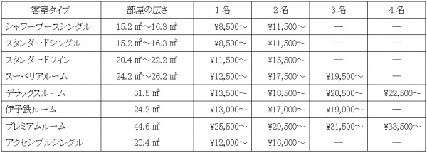 ■ 宿泊料金素泊まり(1泊1室あたり料金 / 税込)