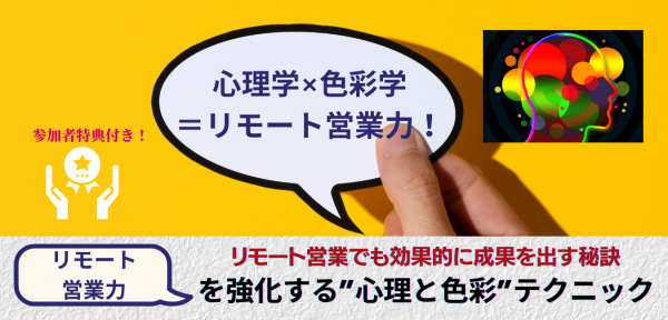 参加者特典付き! リモート営業でも効果的に成果を出す秘訣 「リモート営業力」を強化する”心理”と”色彩”テクニック セミナーを開催します。