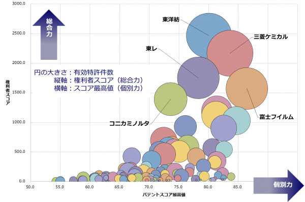 高分子フィルム・シート技術 特許総合力トップ3は東洋紡、三菱ケミカル、東レ