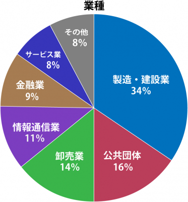 製造業から自治体などの公共団体、金融・建設業に至るまで、当社の製品・サービスを幅広くご利用頂いております。