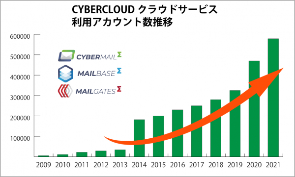 その後、メールセキュリティやメールアーカイブサービスも続々とクラウド化しました、クラウドサービス開始後、利用実績は伸び続けております。