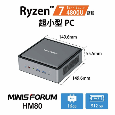 MINISFORUM、AMD Ryzen(TM) 7 4800U搭載 超小型デスクトップパソコン「HM80」発売