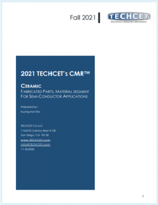 株式会社SEMABIZ(神奈川県川崎市)はTechcetの市場調査報告書「セラミックス:組立部品、半導体用途向け市場 - CERAMIC: Fabricated Parts, Material Segment for Semi-conductor Applications」の販売を2021年10月12日に開始いたしました。株式会社SEMABIZはTechcet(テクセット)の日本の正規代理店です。