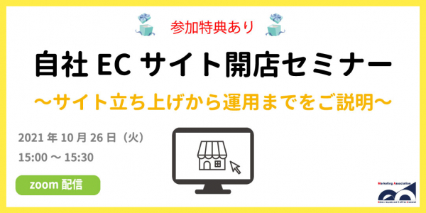 通販サイトの運営代行サービスを提供しているマーケティングアソシエーション株式会社(本社:東京都台東区 代表取締役:相内あゆ美、以下当社)は、2021年10月26日(火)に、ウェビナー「自社ECサイト開店セミナー〜サイト立ち上げから運用までをご説明〜」を開催いたします。