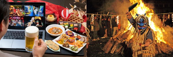 「うおー!悪い子はいねぇがー!」と人々を戒めることで知られる、秋田県の来訪神なまはげ。『オンライン忘年会プラン』では、秋田県男鹿市と中継を結び、本場のなまはげとの問答が体験できます。