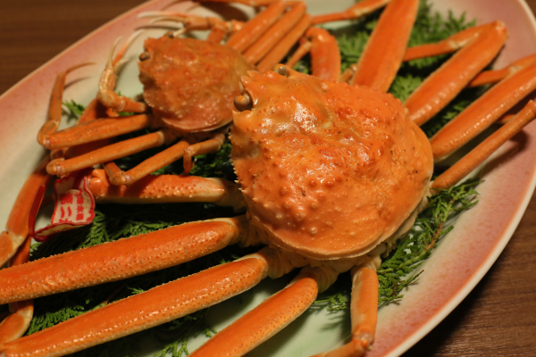 旨味が強く柔らかい食感の「松葉がに」は、甘くてジューシーな身だけではなく、甲羅に詰まったカニみそも風味がよく、鳥取を代表する冬の味覚です。茹でるのが一般的ですが、焼きがにでも美味しくいただけます。