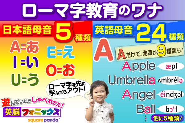 しかしながら英語よりも先に教わる上、英語と同じ「アルファベット表記」であるため、のちのち英語を学ぶ際、多くの子供たちの足を引っ張ります。