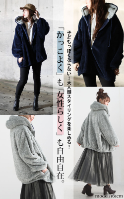 日常のさまざまなシーンにフィットしそうな、サッと手軽に羽織れて暖かいボアドルマンパーカー。