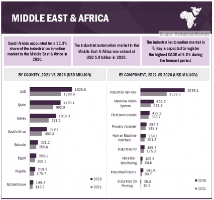 Industrial Automation Market in the Europe and Middle East & Africa with COVID-19 Impact by Component (Industrial Sensors, Industrial 3D Printing, Industrial Robots), Solution (SCADA, DCS), Industry and Region - Forecast to 2026