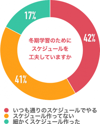 「いつも通りのスケジュールでやる」が42%、「スケジュール作ってない」が41%、「細かくスケジュール作った」が17%という回答でした。