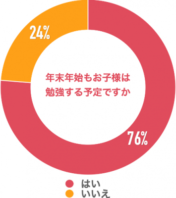6年生は受験直前のため、殆どのお子さんが最後の追い込みの勉強に取り組んでいるようですが、4年生や5年生の約3割の方は、「年末年始は勉強はお休み」と決めて過ごす予定のようです。受験までまだ時間のある学年であれば、勉強と遊びのメリハリをつける生活も大切ですね。