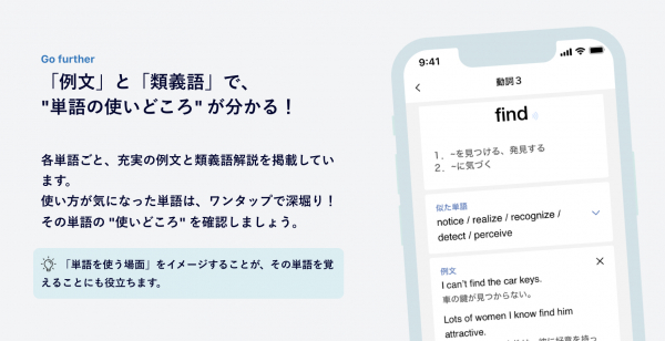 「つながる英単語」は、関連した単語同士(類義語)を結びつけながら記憶していく単語アプリです。以下の特徴があります。