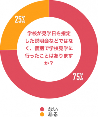 説明会などではなく個別で学校見学にいったことが「ない」が75%、「ある」が25%という回答でした。