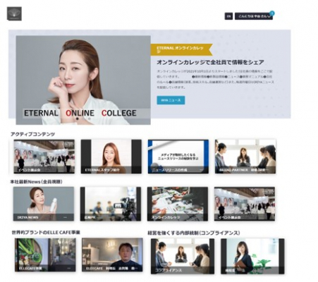 紙ベースのマニュアルなど業務マニュアルが数100ページ存在していて、更新作業、メンテナンス等に時間もかかっていた。また、教育研修では、対面研修は、時間と教育コストがかかる(遠隔地などコロナ禍もあり対応できない)点があった。また業務拡大により社員に理念、VISIONの浸透、社内の最新情報、業務マニュアルなどの共有化がうまくいかず、業務に支障をきたしていた。今後、生産性効率をアップするためにも共有化と効率化をする必要があった。2025グローバルビジョン(世界20ケ国に化粧品を展開)を達成するためには、さらに質に高いスタッフの教育研修と情報の共有化が必要となり、今回オンライン教育システム(ETERNALオンラインカレッジ)の導入に至った。