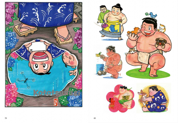 力士時代に見た風景、感じた思い、夢見た景色を現したイラストは、相撲ファンならずとも、誰が見ても楽しく、心が和む絵ばかりです。