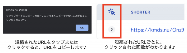 ・生成されたショートリンクURL文字列をクリックするだけで、URLコピーを行えるようにしました。