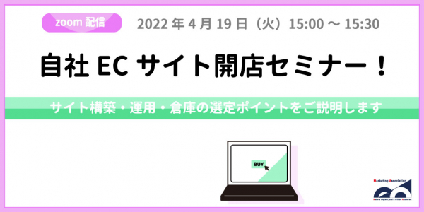 ECサイトの運営代行サービスを提供しているマーケティングアソシエーション株式会社(本社:東京都台東区 代表取締役:相内あゆ美、以下当社)は、2022年4月19日(火)に、ウェビナー「自社ECサイト開店セミナー!サイト構築・運用・倉庫の選定ポイントをご説明します」を開催いたします。
